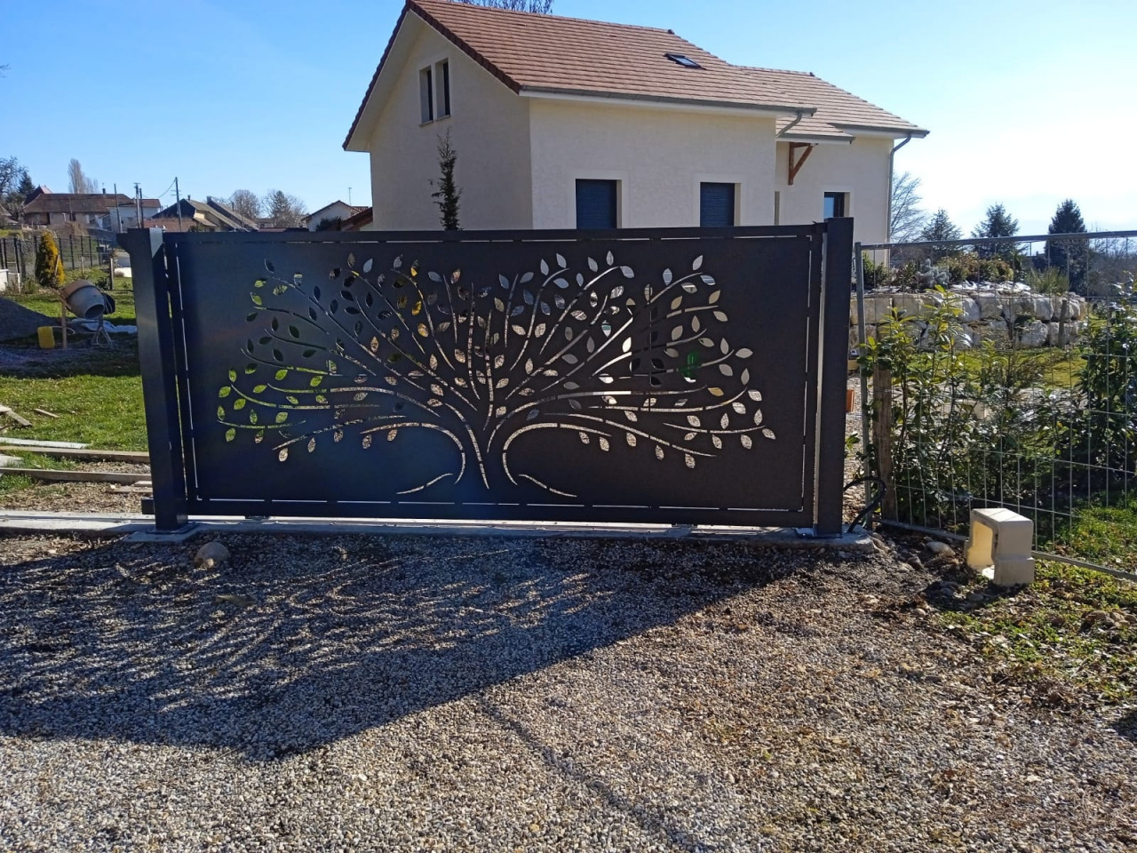 Portails battants ou coulissants, motifs décoratifs, motorisation, remplissages variés (panneaux, tiges, tôles perforées). Finitions thermolaquage résistantes.